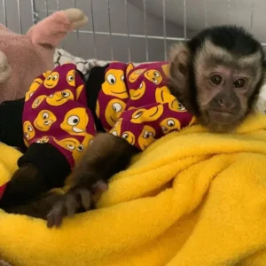 Meet our charming 2-month-old female Capuchin monkey, an intelligent and affectionate young primate raised with expert care. Capuchins are known for their bright personalities, curiosity, and deep emotional bonds with their caretakers — making them truly special companions for qualified, licensed owners.