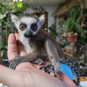 This little male has been hand-raised and socialized from birth, ensuring a calm and trusting temperament. He’s healthy, active, and developing beautifully on a balanced diet tailored for young lemurs. Our team provides full care guidance, health records, and feeding instructions to support a smooth transition into his new home.
