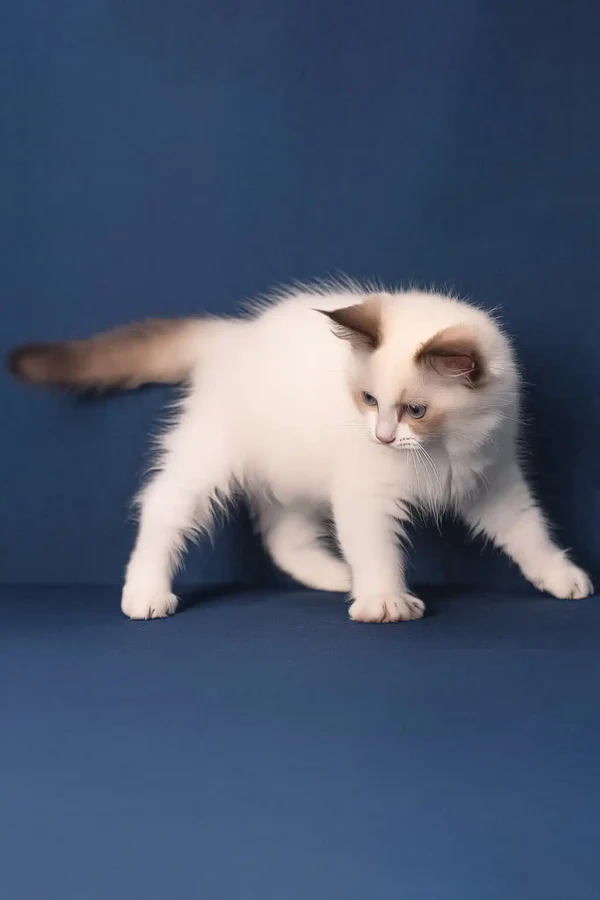 Buy a Ragdoll cat . My bright blue, almond-shaped eyes radiate curiosity and warmth, ready to bond with you as only a Ragdoll can. At just three months old, I’m already showing signs of growing into a large, muscular companion, with an expected weight between 7 and 9 kg. I come from rare bloodlines and an excellent breed type—exactly what you would expect from a luxurious purebred kitten.