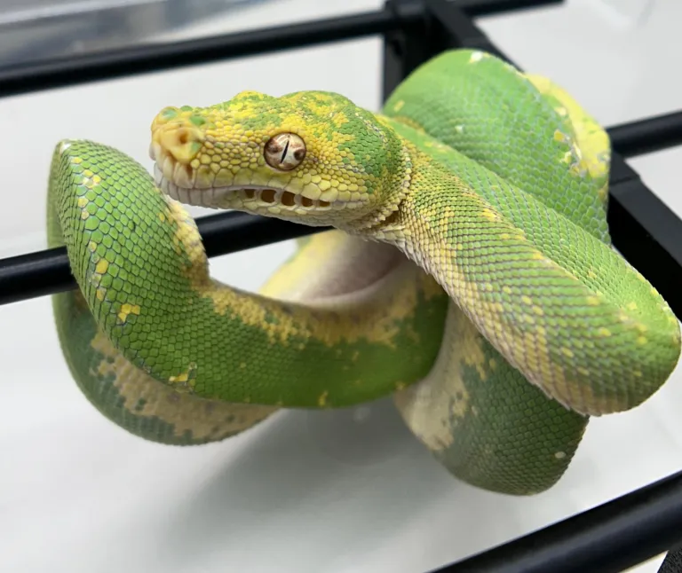 Our Baumpython Sorong is captive-bred, healthy, and well-established, feeding consistently and showing excellent coloration development. With its calm yet curious temperament, this snake is a favorite among advanced reptile keepers and collectors seeking a visually captivating display animal.