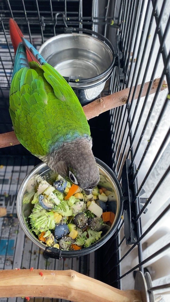 Diet: High-quality pellets, fresh veggies, fruits, and limited seeds
