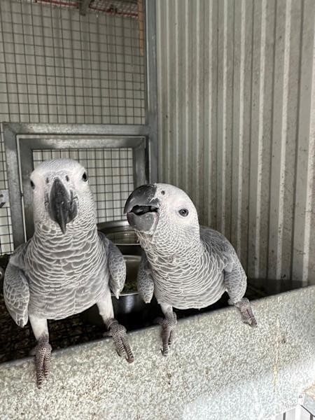 We offer two main types: the Congo grey parrot, known for its light grey plumage and calm nature, and the Timneh grey parrot, which is slightly smaller, has darker feathers and a playful nature.