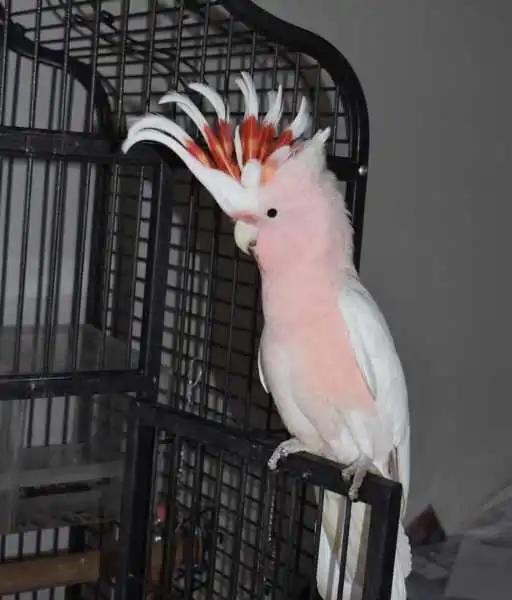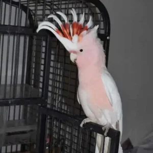 Buy an Inca Cockatoo . 1-year-old Inca Cockatoo available! They are absolutely stunning birds. They have a pale pink and white body. Their most striking feature is their crest. They have a straight crest with bright red and orange stripes. Major Mitchell’s Cockatoos can be wonderful companions. Like all cockatoos, they need time, dedication, and training. With love and devotion, they will be a wonderful friend for life. Ideally, the minimum cage size for this size of bird is 40 x 30 x 75 inches with a 1-inch bar spacing. At papageienvoliere.com, we focus on education, nutrition, and conservation. We work very hard to educate our customers about the social needs of parrots.