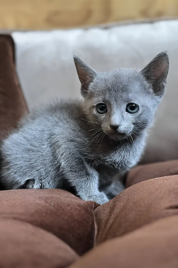 Russian Blue Cat for Sale. My soft paws and bright green eyes are immediately noticeable, but what truly makes me special is my quiet charm, which I bring to any home. I come from rare, high-quality bloodlines and embody the best of my breed—elegant, affectionate, and naturally balanced. I will grow into a graceful young gentleman and will likely weigh between 3 and 5.5 kg when fully grown.