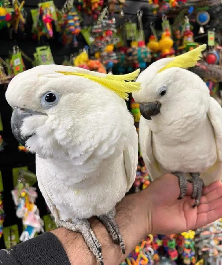 This beautiful 7-month-old Sulphur-Crested Cockatoo pair (male and female) is a perfect match for parrot lovers seeking affectionate, intelligent, and well-bonded birds. Known for their snowy white feathers and radiant yellow crests, Sulphur-Crested Cockatoos are among the most captivating parrot species.